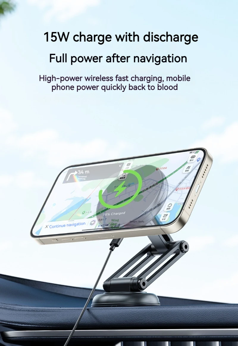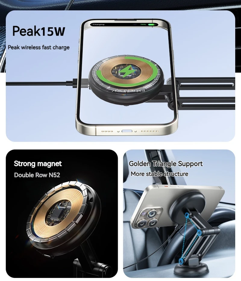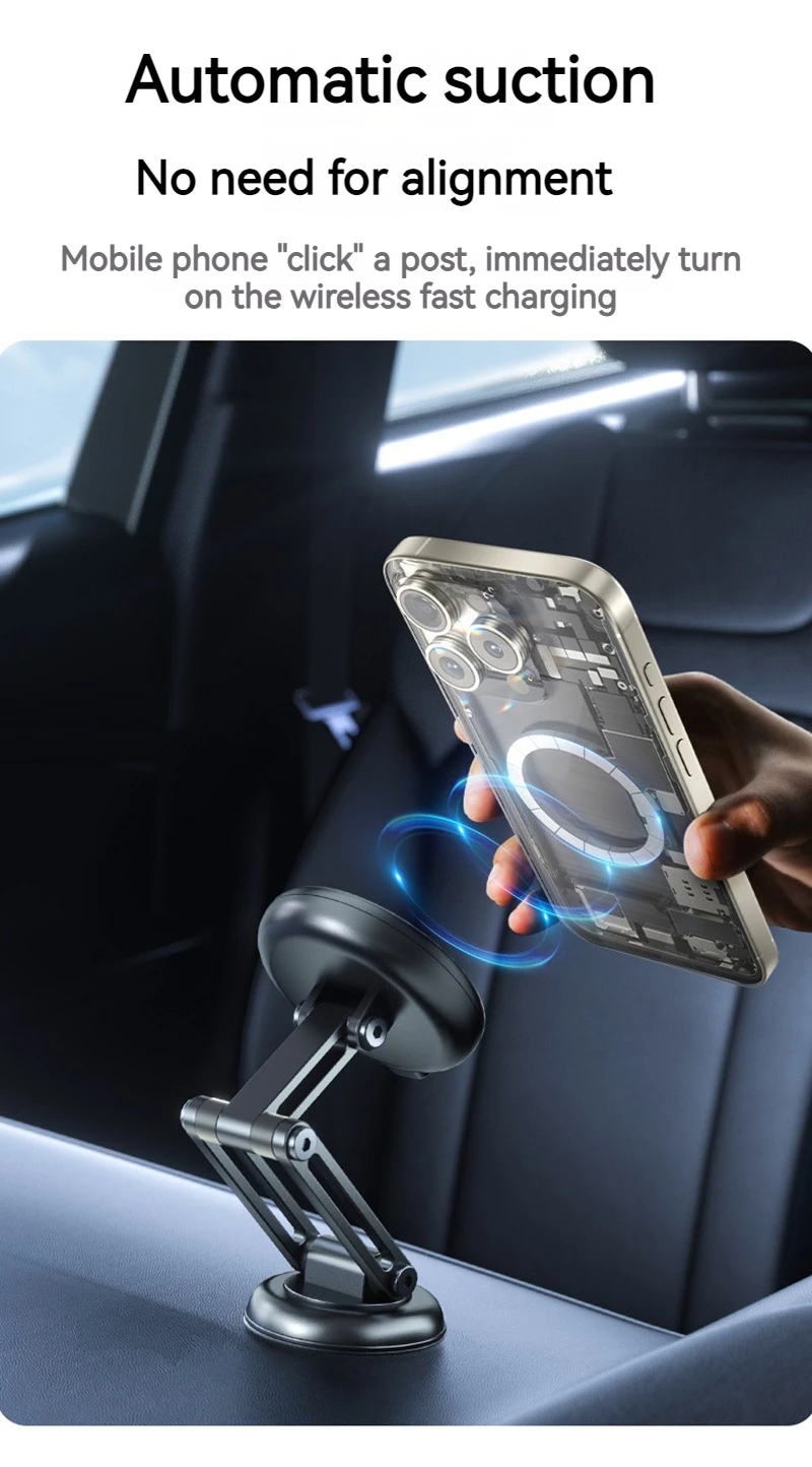 15W Metal Magnetic Car Phone Holder Wireless Charger 360 Rotation Foldable in Car Stand For Iphone 15 14 13 12 Pro Max Samsung