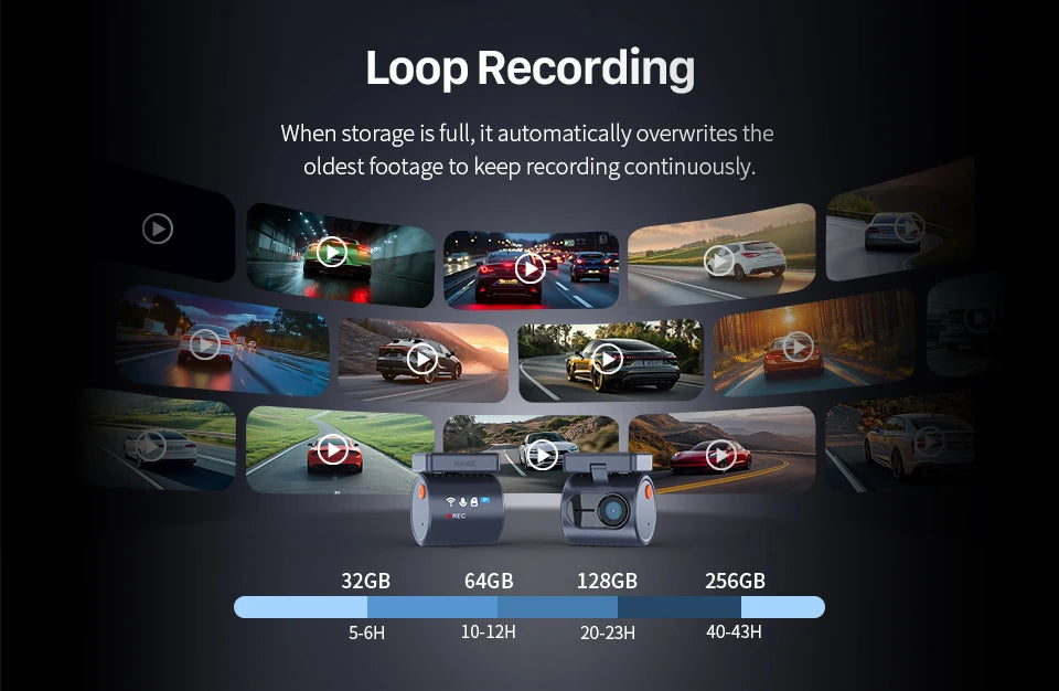 During long drives, the KAWA MINI 3 Pro’s loop recording feature ensures every second is captured. When storage is full, it automatically overwrites the oldest footage, keeping continuous recording without interruption, so you never miss a crucial moment.