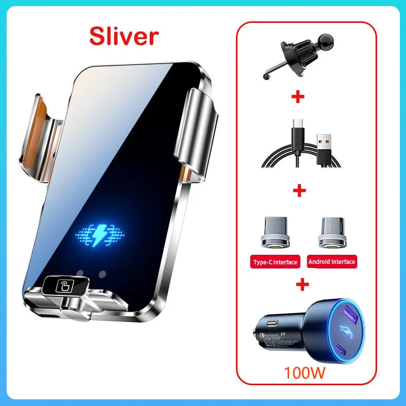 66W Magnetic Head Car Phone Holder 15W Fast Wireless Charger Infrared Induction Touch Sensing with Charger for iPhone Samsung