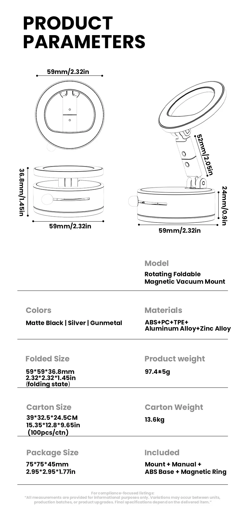 Don't settle for inferior phone holders that fail to provide the stability and versatility you need. Upgrade to the A7 Plus Vacuum Portable Magnetic Phone Car Holder and experience the convenience and peace of mind that comes with having your phone securely mounted wherever you go. Order yours today and take your phone-holding experience to the next level!