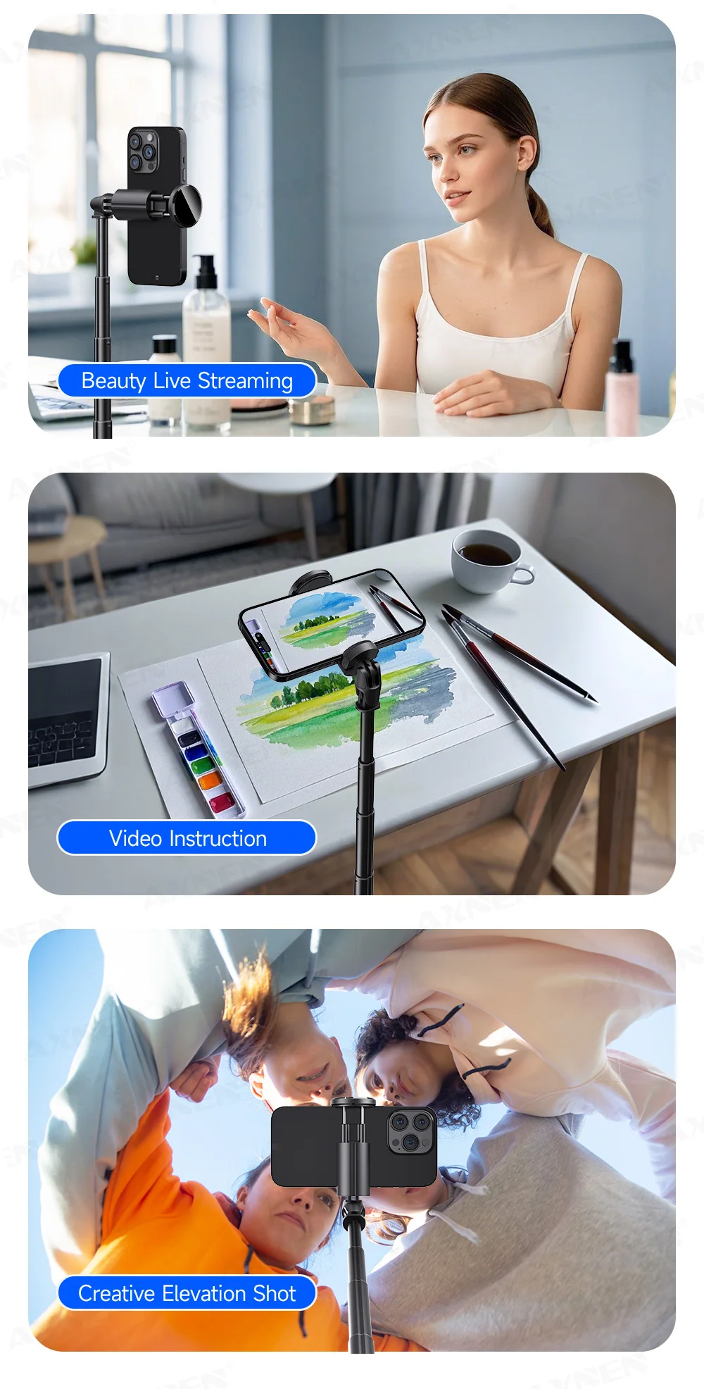 From overhead shots to full-body photos, from beauty livestreams to travel memories — TT01 gives you hands-free shooting, multi-angle flexibility, and storage-friendly design.