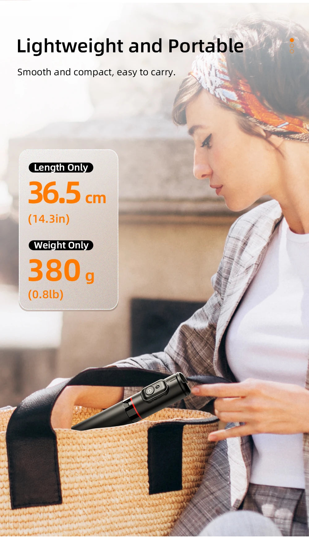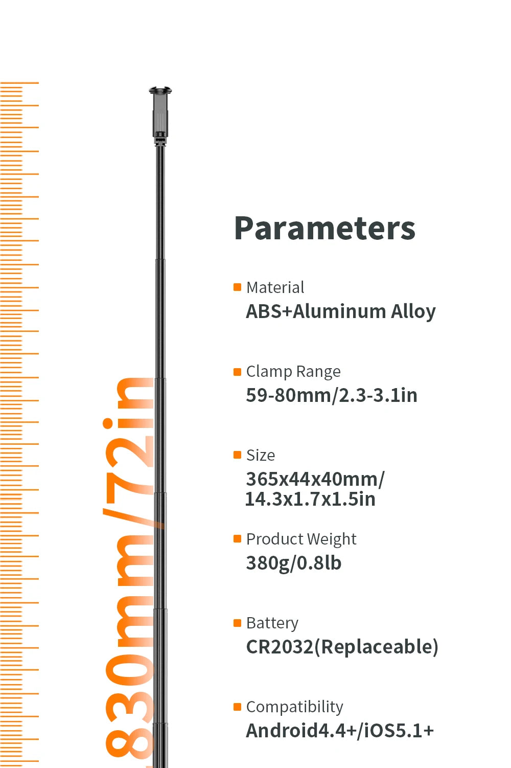 Made with high-quality ABS and Aluminum Alloy materials, this selfie stick is durable and lightweight, making it easy to carry with you wherever you go. The product dimensions of 365x44x40mm and weight of 380g ensure portability without compromising on quality.