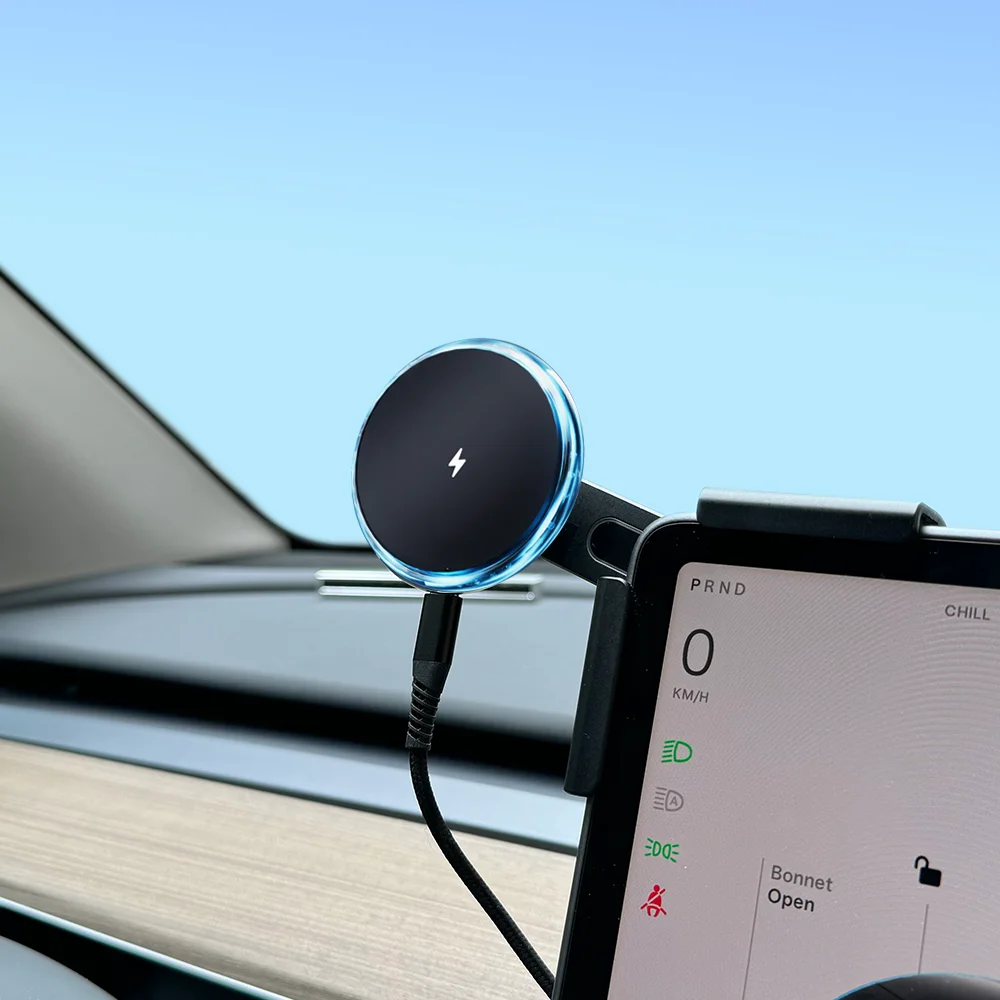 for Tesla Model Y Launch 2025 Model 3 HIGHLAND 2024 Cybertruck BYD Car Phone Mount Holder 15W Magnetic Magsafe Wireless Charger