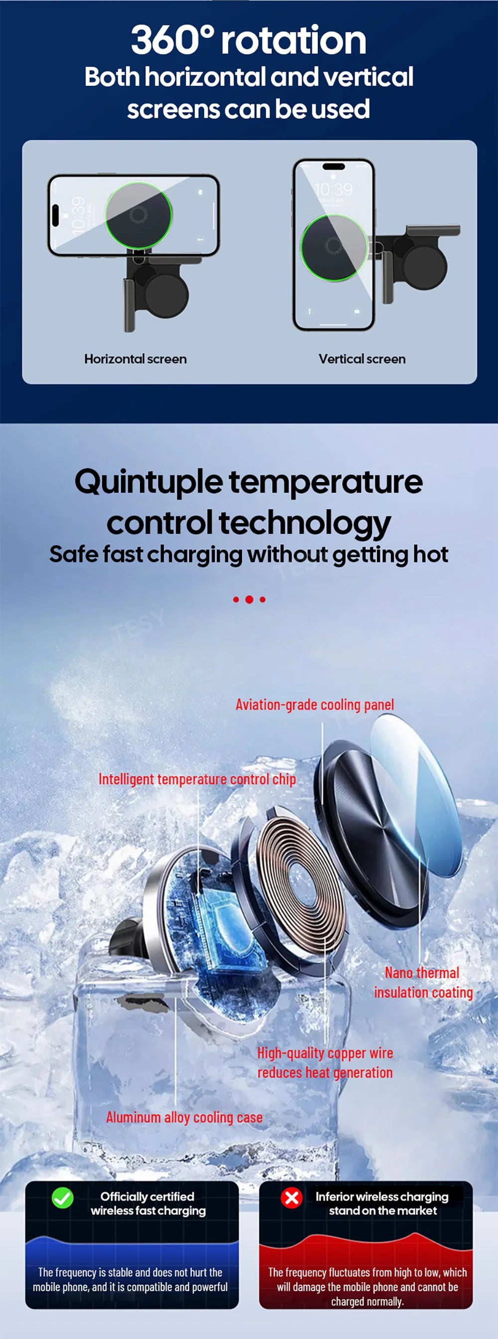 Wireless Charging - 15W wireless fast charging, simply stick and use while driving, keeping your phone charged at all times.