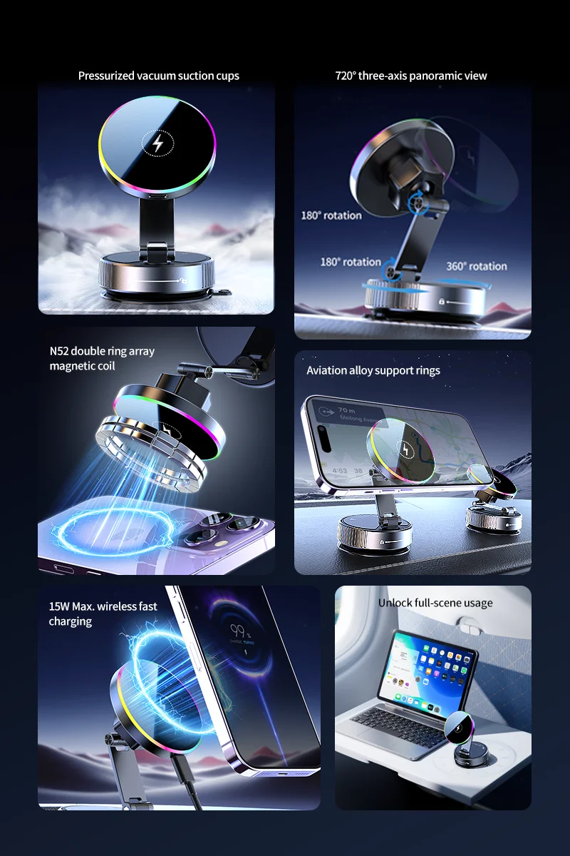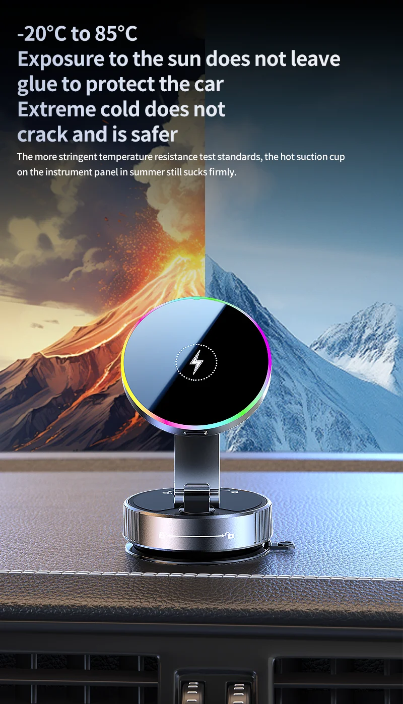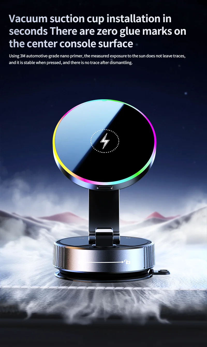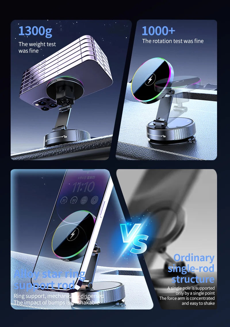 Fashionable Design Car Magnetic Wireless Charging Stand, With Built-in Ambient Light Supporting 360 ° All-Round Rotation.