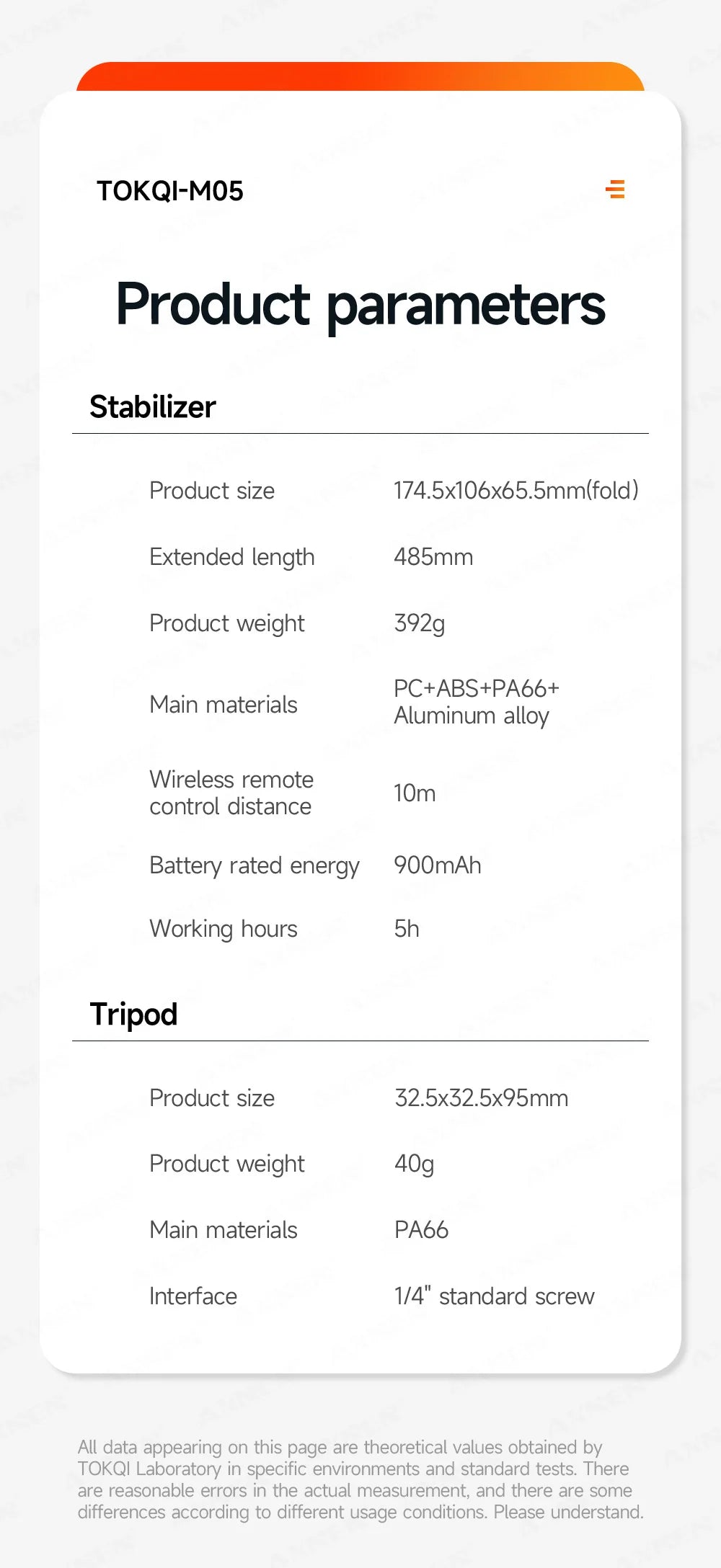 The key features of the TOKQI M05 gimbal include: