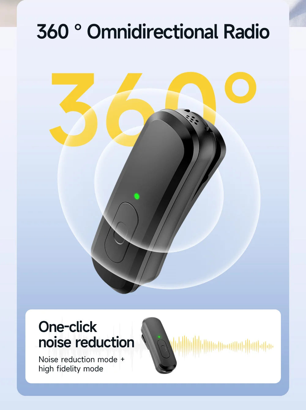 The M06 offers everything the M05 does — plus a detachable wireless lavalier microphone built into the body. Capture 360° omnidirectional sound with one-touch noise reduction, making it perfect for interviews, vlogs, or live content creation.
