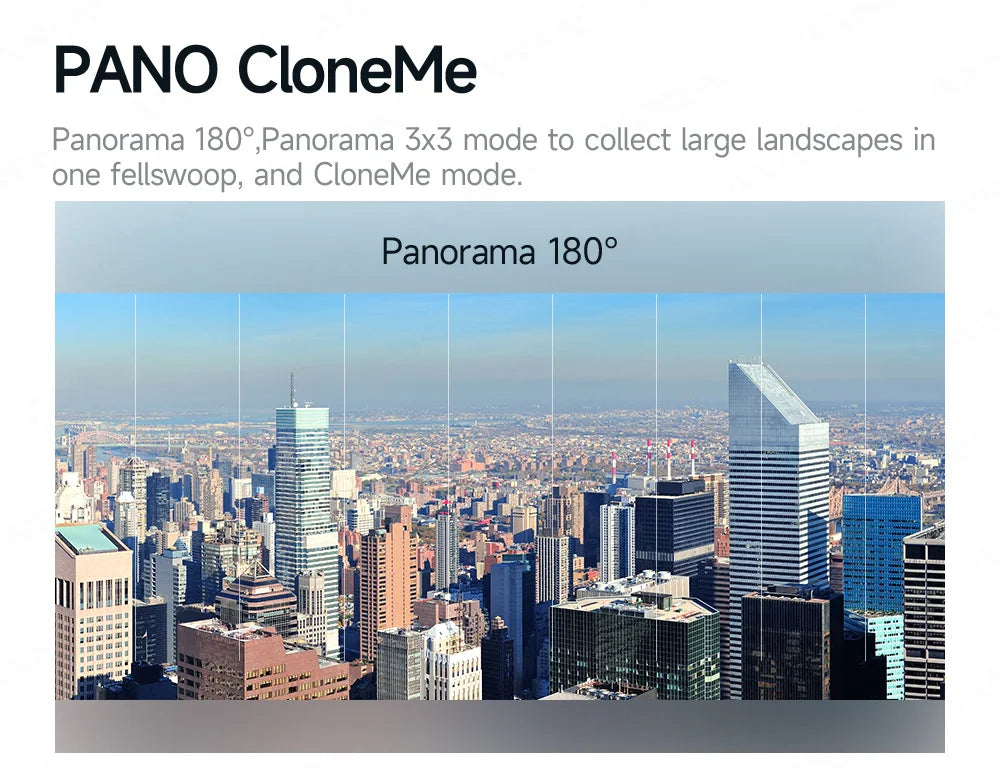 - Multi-Function Modes: Inception, CloneMe, Dyna-Zoom, Timelapse, and more with a single tap