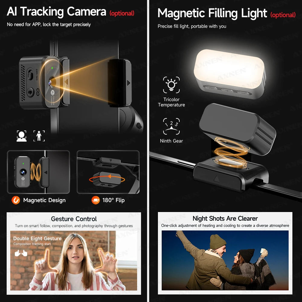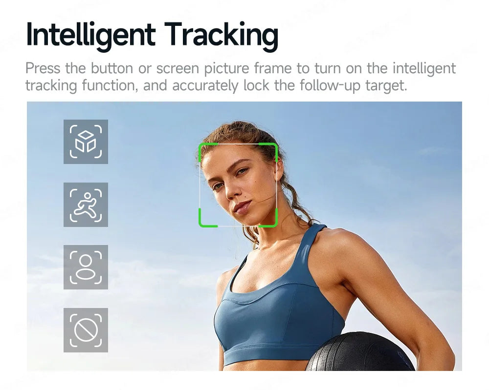 🔍 Smart Tracking – Face and object tracking via app or optional AI tracking camera