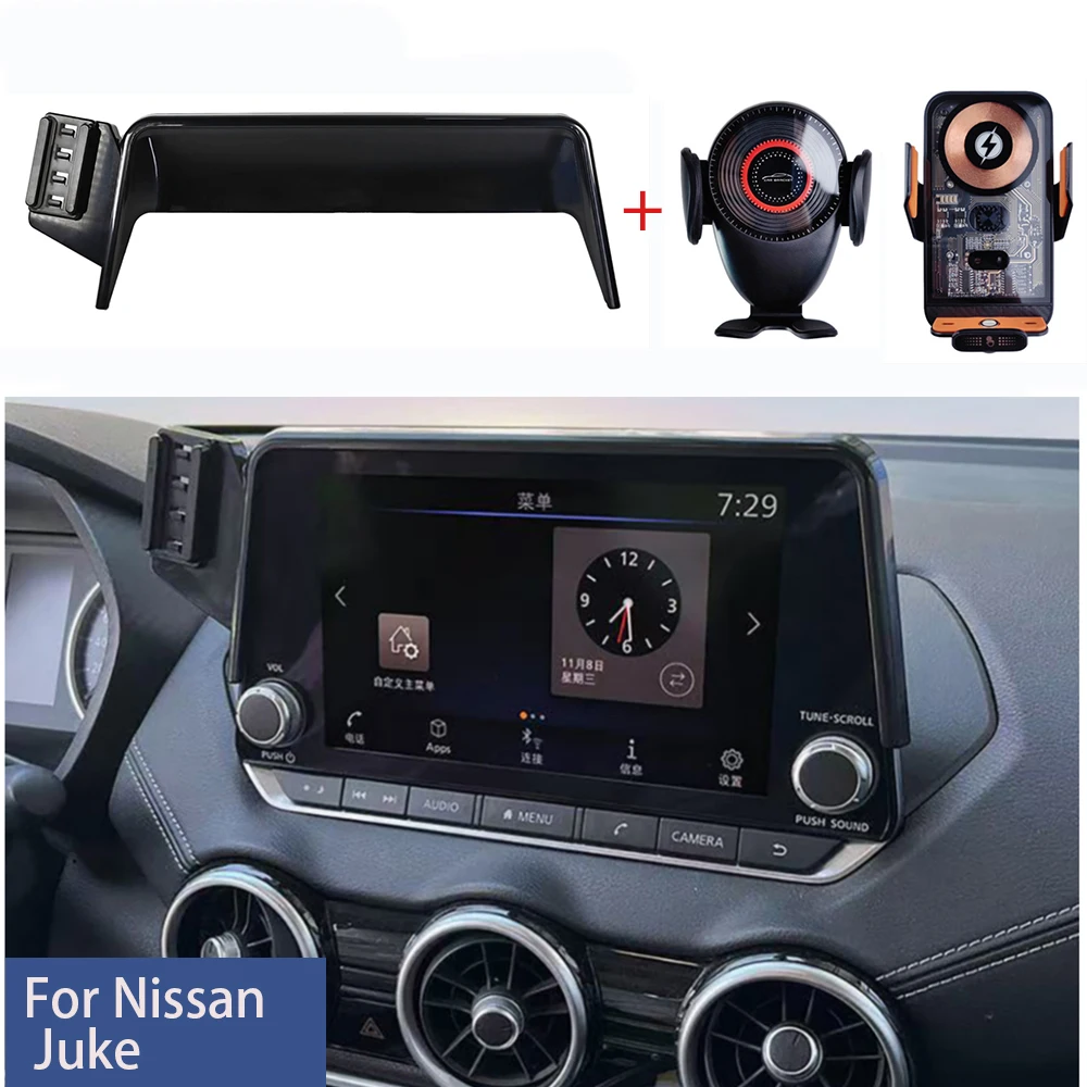 For Nissan Juke Car Phone Holder Screen Fixed 66W Wireless Charging Stand Car Mobile Phone Mount Base