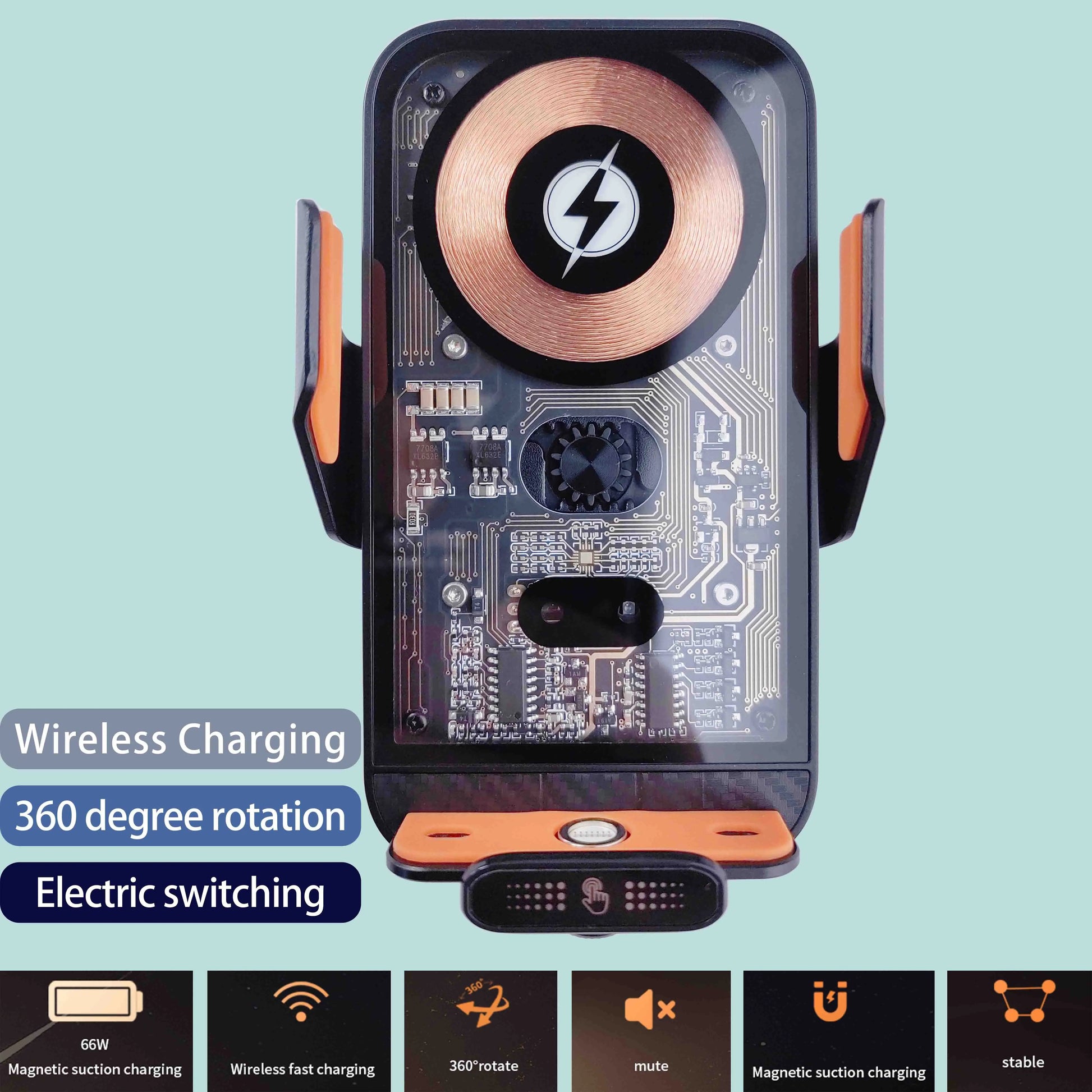 But that's not all - our car phone holder also comes equipped with 66W wireless charging capabilities. Say goodbye to tangled cords and low battery anxiety - simply place your phone on the charging stand and watch as it powers up quickly and efficiently. The convenience of wireless charging makes this product a must-have for any modern driver.
