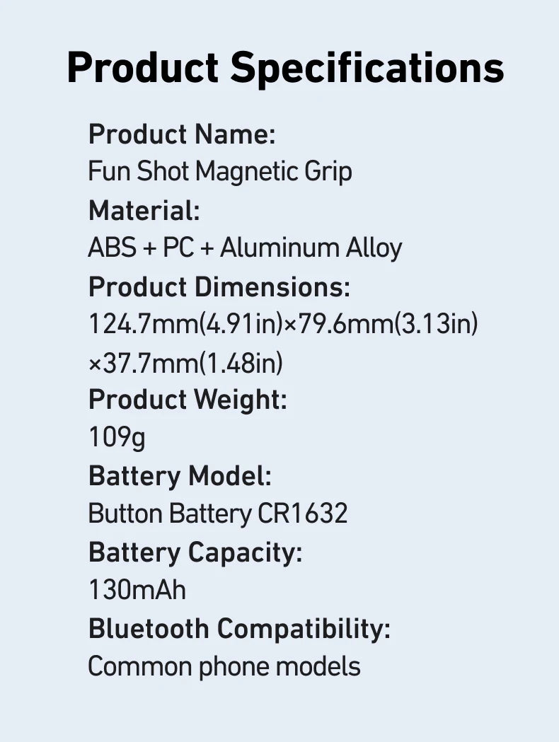 Fun Shot Magnetic Grip, Ergonomic Style Phone Camera Grip with Detachable Remote, Expandable Functionality for iPhone/Android
