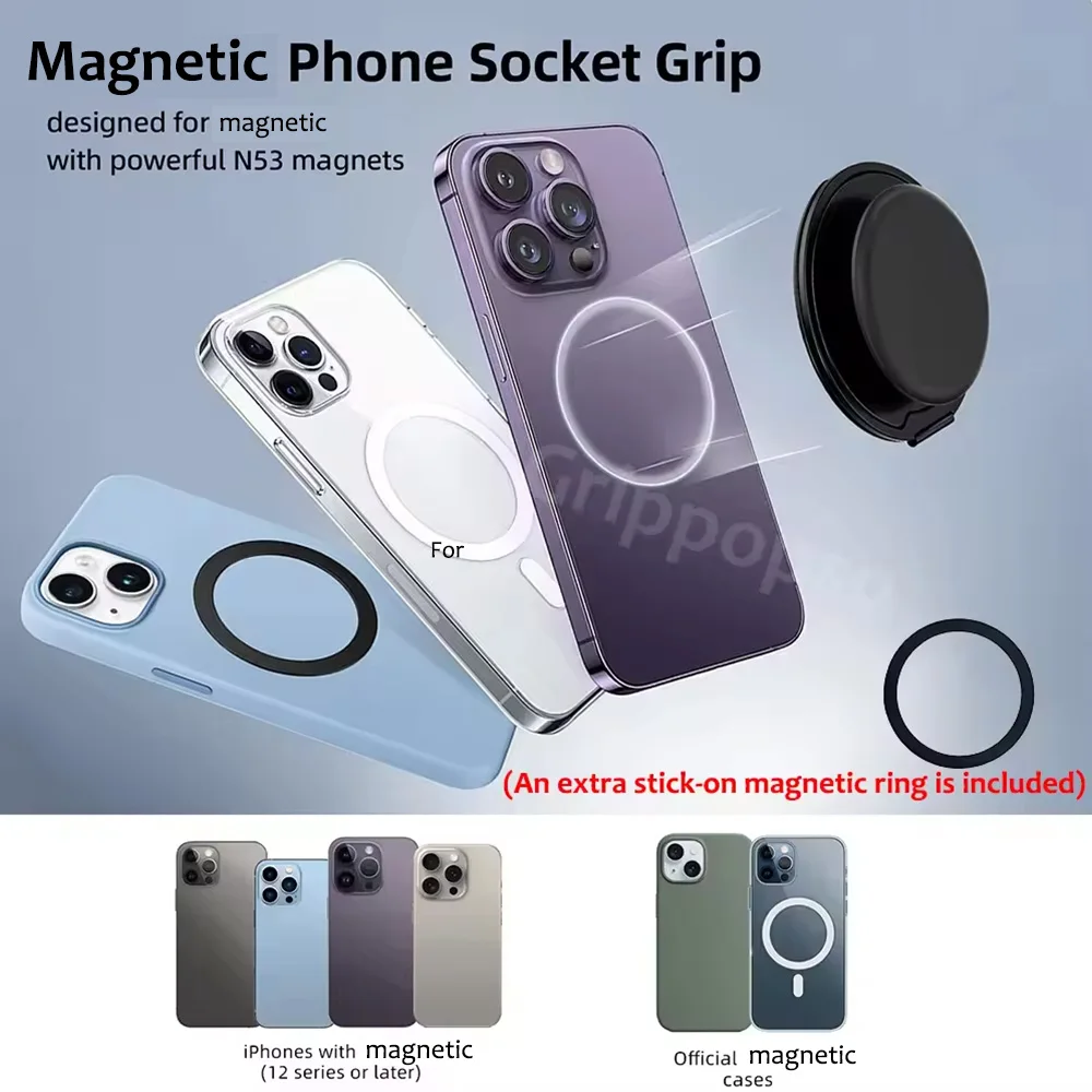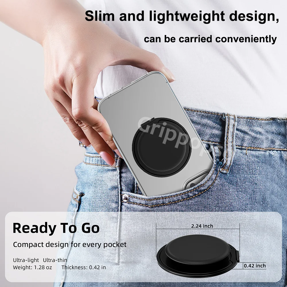 Grippopso Mobile Phone Finger Holder Socket Magnetic Cell Phone Grip Stand Finger Ring Kickstand Rotation Universal Phone Stand