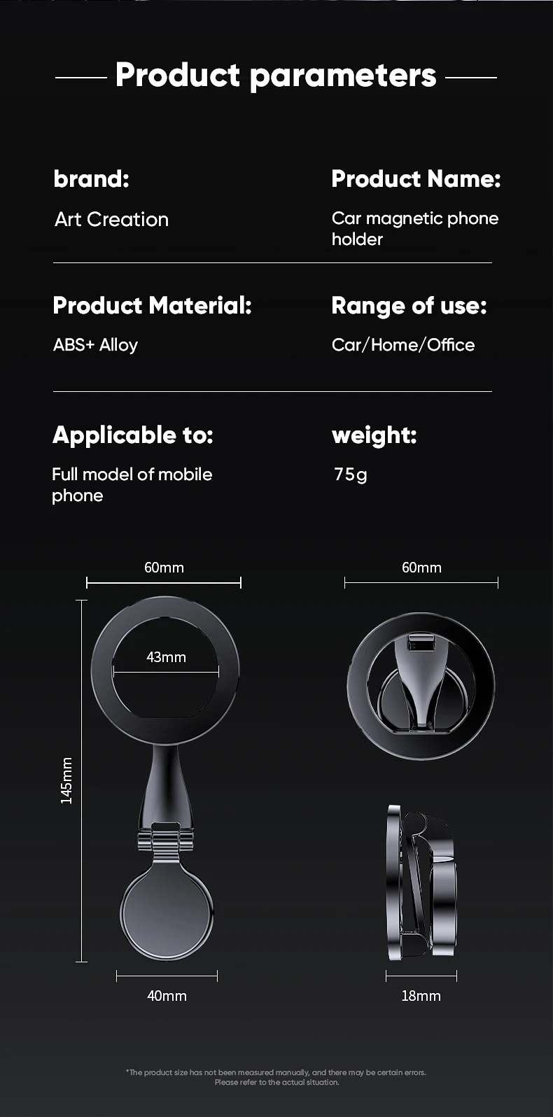 The magnetic car phone holder is made of high-quality ziny alloy material, with smooth surface and delicate texture, scratch-resistant, durable and beautiful, we can use it for a long time.The metal ring of the phone car mount adopts a hollow design, which does not interfere with the signal, and can keep navigation and calls smooth.