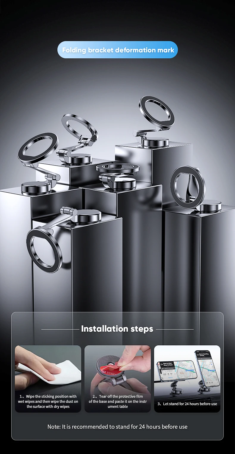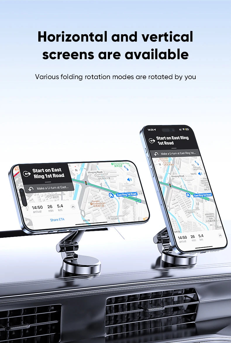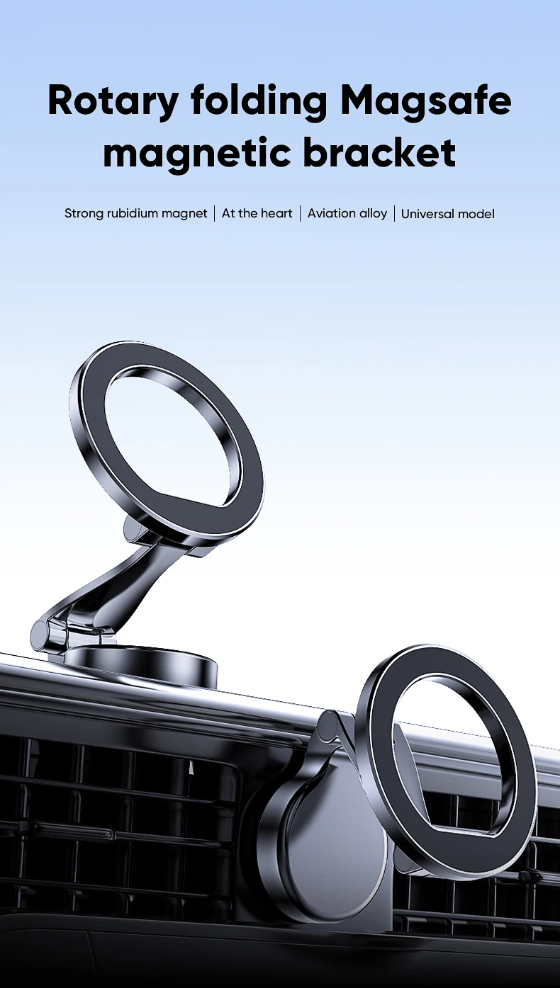 Car cell phone holder for Magsafe is equipped with a 360-degree adjustable base, which can adjust the angle of the phone at will.The cellphone holder for car is compact and does not take up much space.It can be placed in the dashboard without blocking the line of sight, and you can drive safely without looking down at the device.