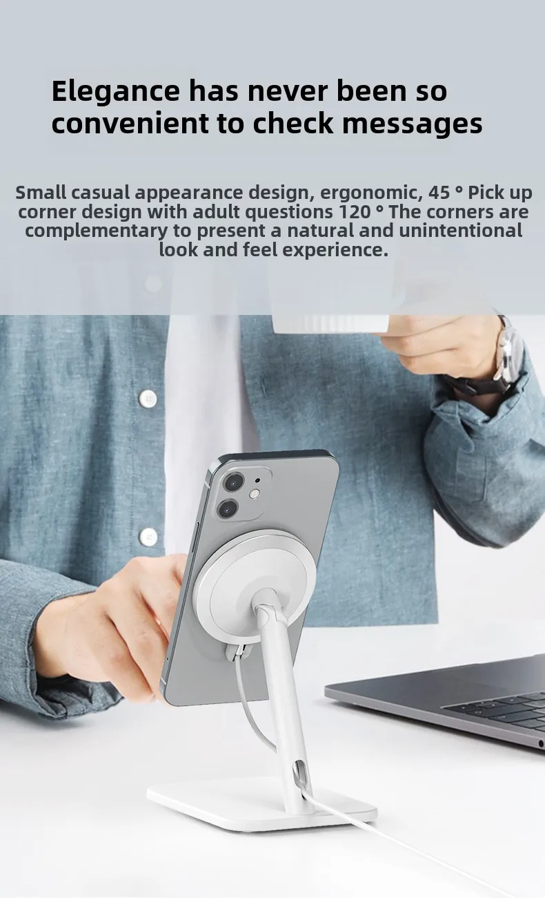 Magnetic Magsafe Phone Holder Stand with Wireless Charger for Apple 12+ Phones - Desktop Stand with Fast Charging