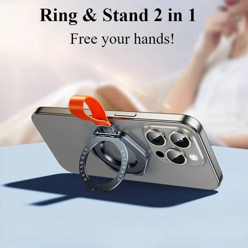 Oatsbasf Metal Magnetic Phone Stand Adjustable with Silicone Lanyard 360°Rotate for iPhone Samsung Google Universal Phone Holder