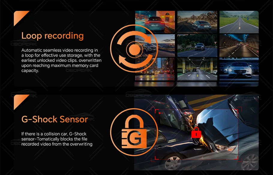 The OBDPEAK K8 Pro is based on a dedicated power cord that allows for continuous recording after parking, shortening the process of several days into shorter videos, saving storage space, and protecting your car's safety 24/7. Four cameras on the front, back, left, and right sides provide comprehensive protection for your vehicle and reliable customer service support, ensuring your complete satisfaction. (Additional purchase of parking monitoring hardware kit is required)