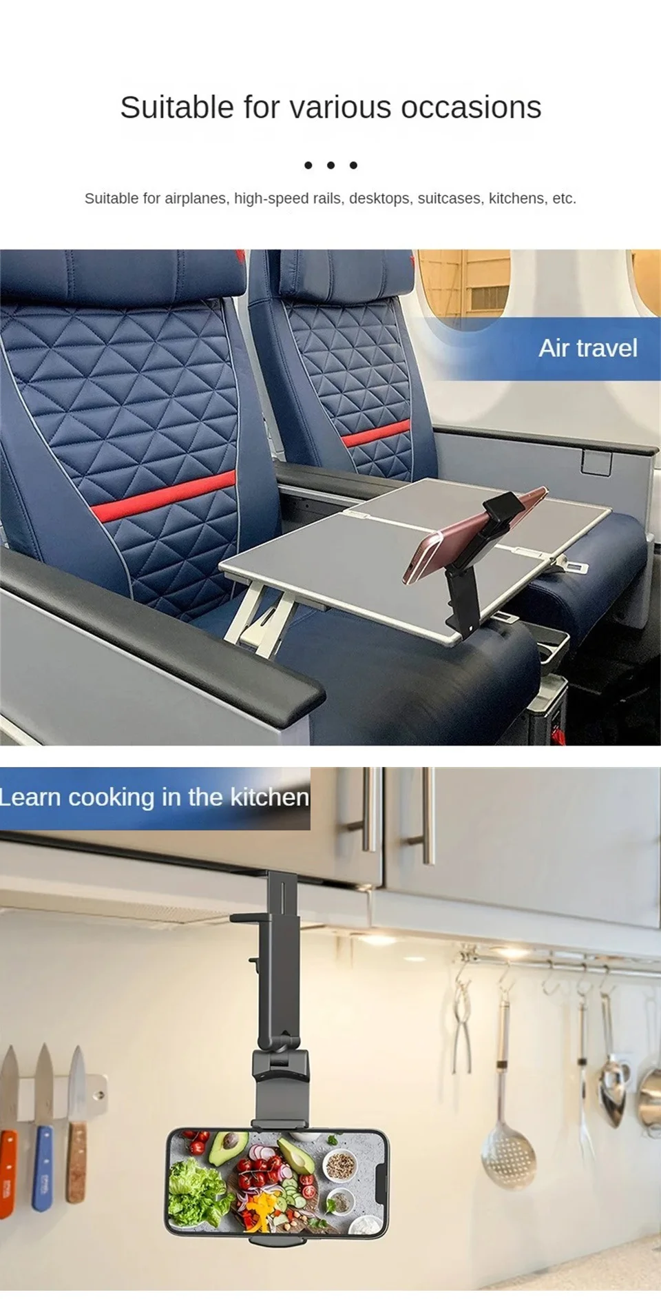 STTKGZD Airplane Phone Holder Portable Foldable Desktop Mobile Phone Stand Rotatable Selfie Holding Train Seat Clip Lazy Bracket