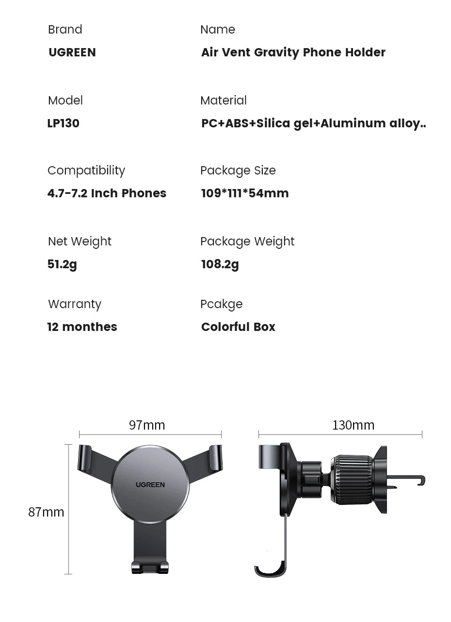 UGREEN Car Phone Holder Gravity Phone Stand For Xiaomi Samsung iPhone 16 15 14 Pro Max Air Vent Car Holder Stand