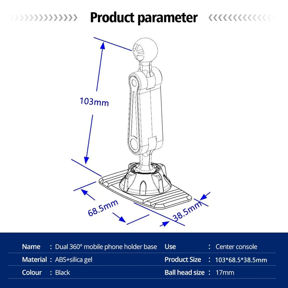 Introducing the Universal 17mm Ball Head Car Dashboard Sticker Base 360 Degree Rotation Car Phone Holder! Say goodbye to bulky and cumbersome phone holders that obstruct your view while driving. Our innovative car phone holder is designed to provide a secure and convenient way to mount your phone in your vehicle.