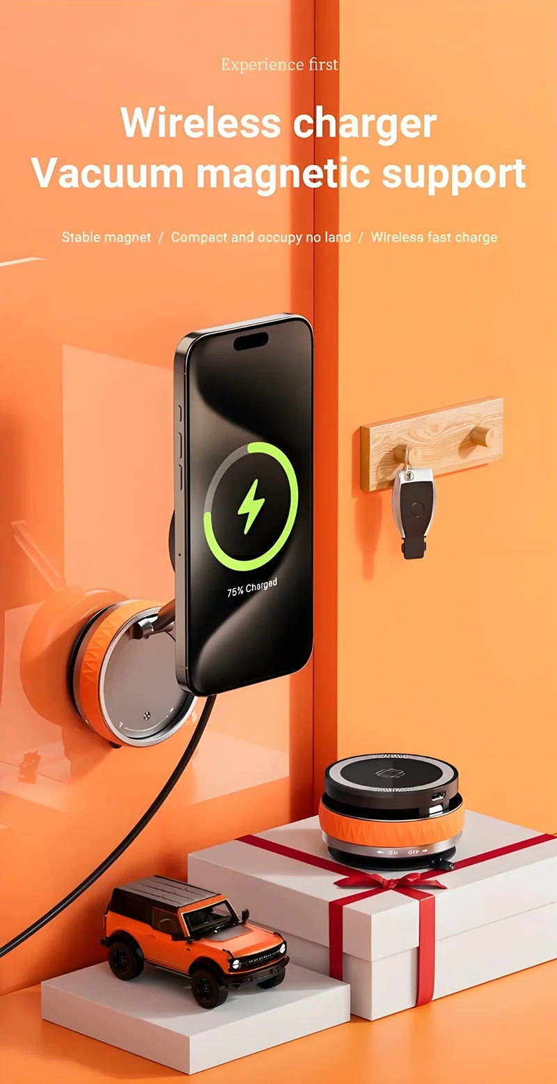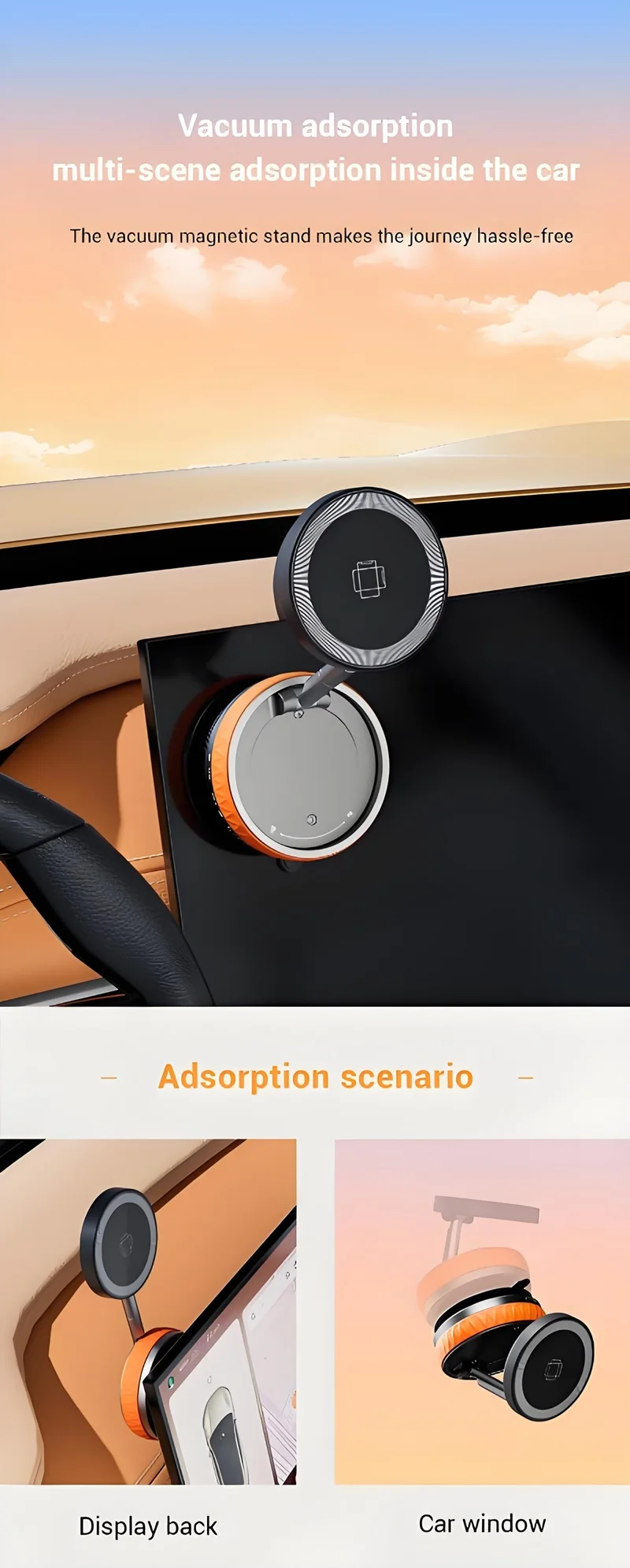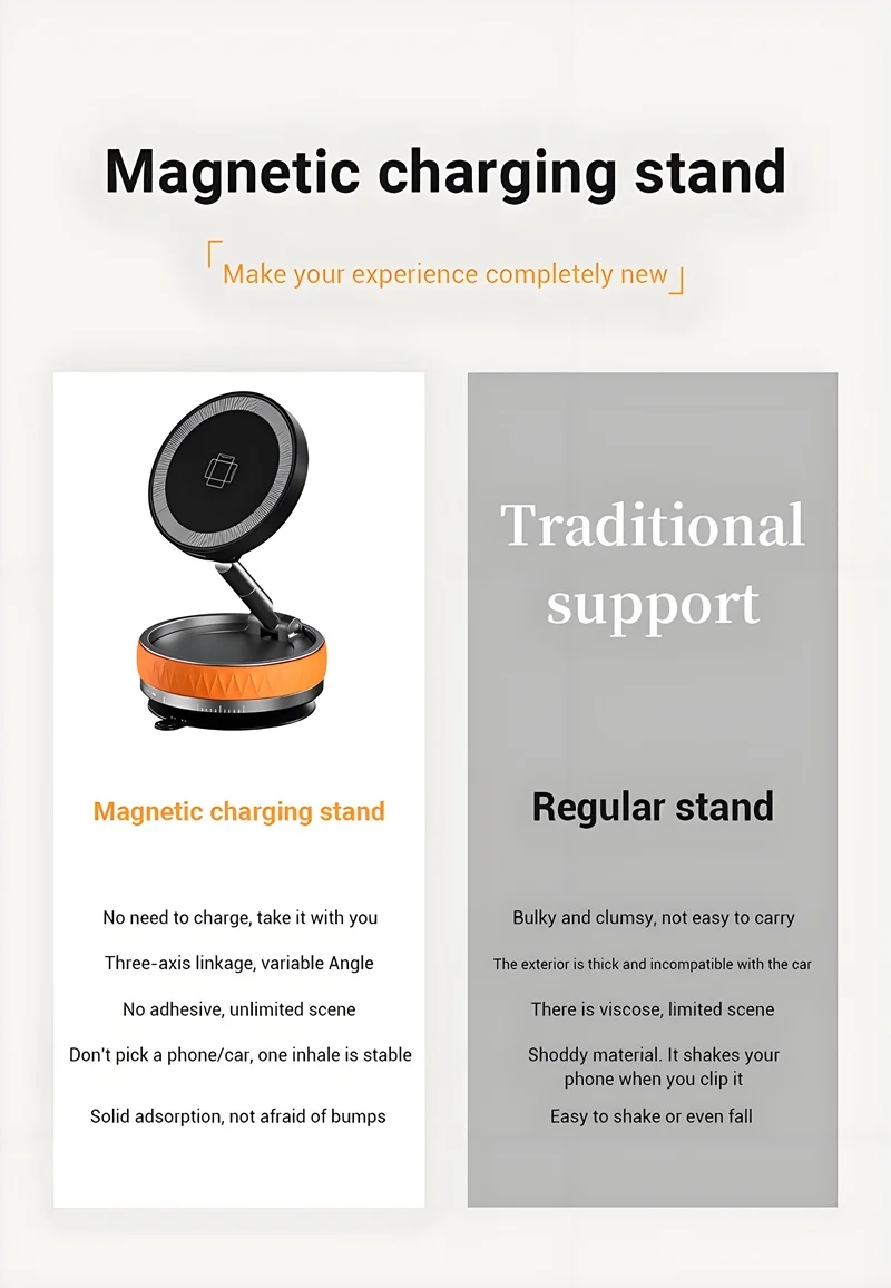 15W Vacuum Suction Magnetic Car Phone Holder Foldable Mirror Gym Charging Stand for iPhone 16 15 14 13 12 11 Pro Max Samsung