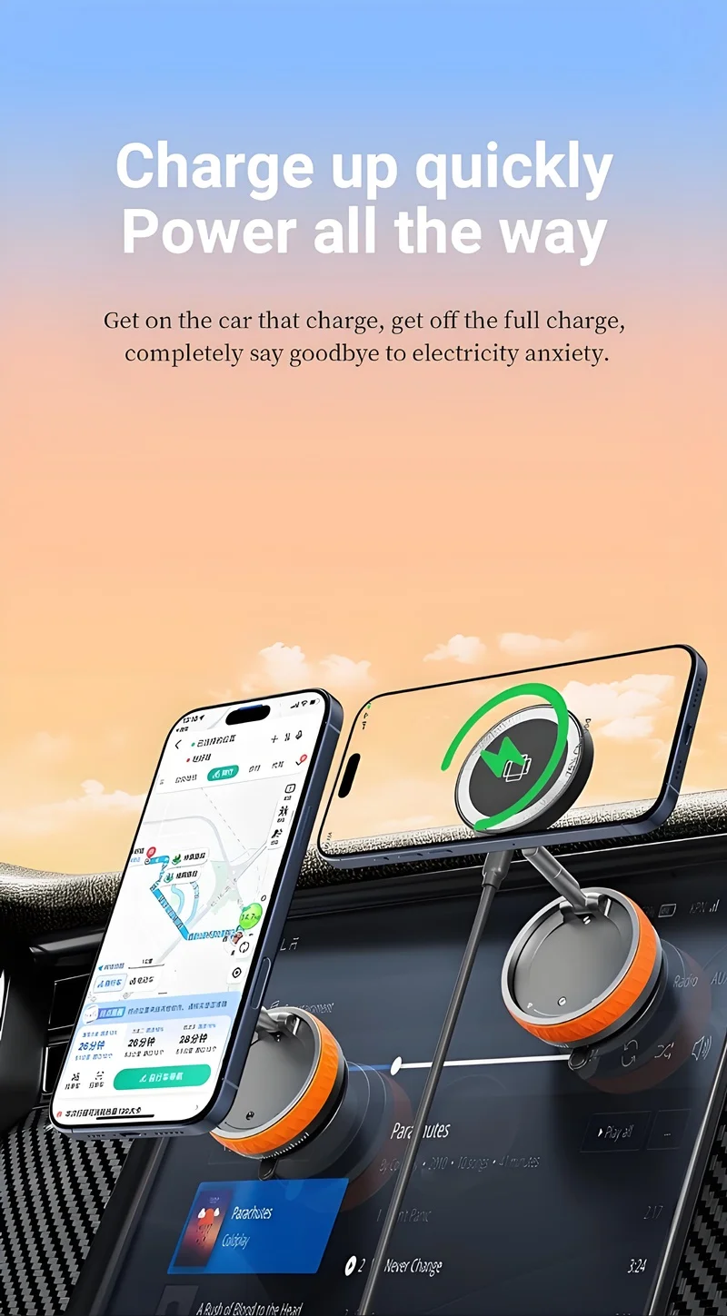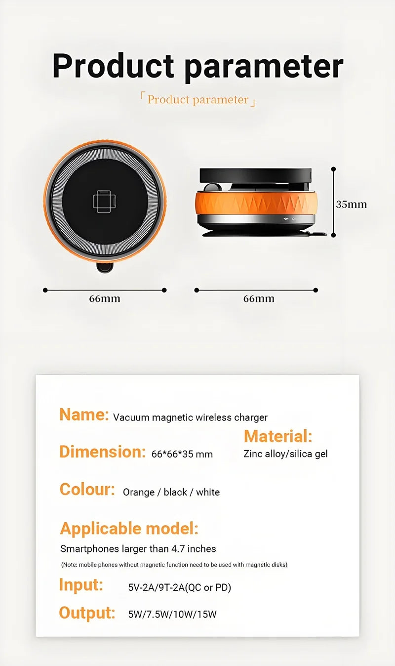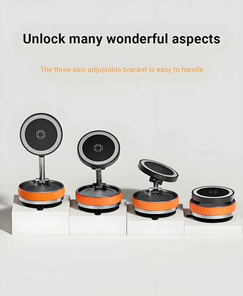 15W Vacuum Suction Magnetic Car Phone Holder Foldable Mirror Gym Charging Stand for iPhone 16 15 14 13 12 11 Pro Max Samsung