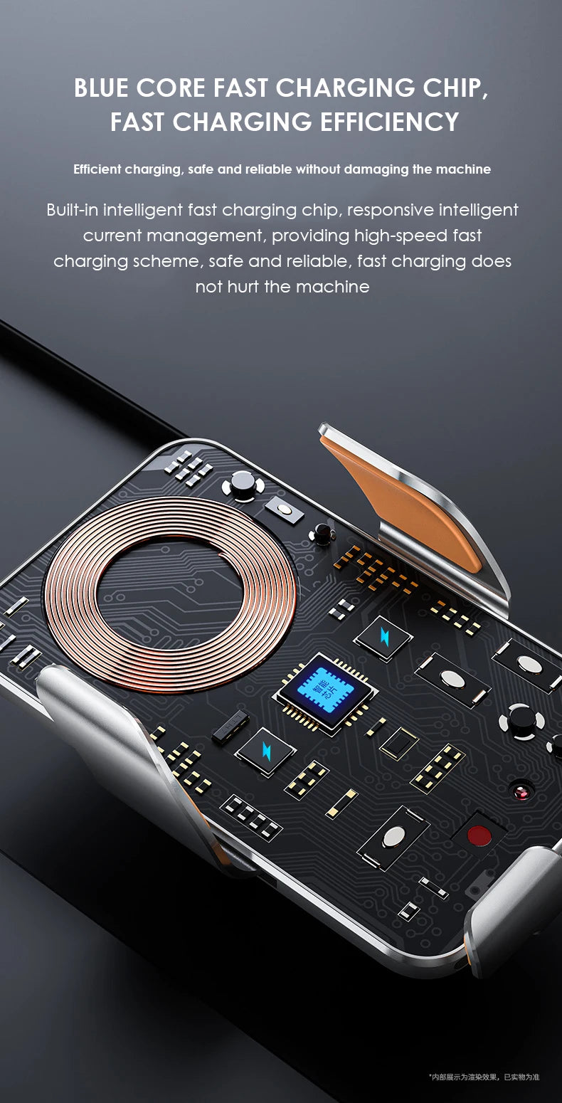 Say goodbye to messy cables and slow charging speeds. Our wireless car charger features a super fast 15W charging capability, ensuring that your device is quickly and efficiently powered up while you're on the road. This means less time waiting around for your device to charge and more time enjoying your drive.