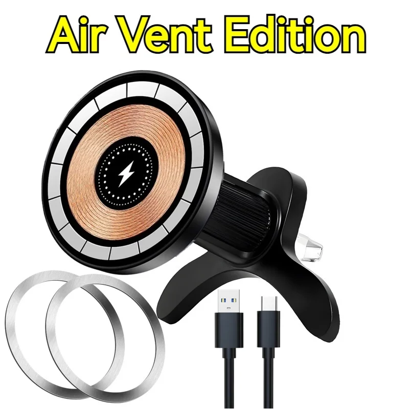15W Car Magnetic Wireless Charger Holder with Metal Body - Fits Vent & Console, Fast Charging Compatible for iPhone 16/Samsung