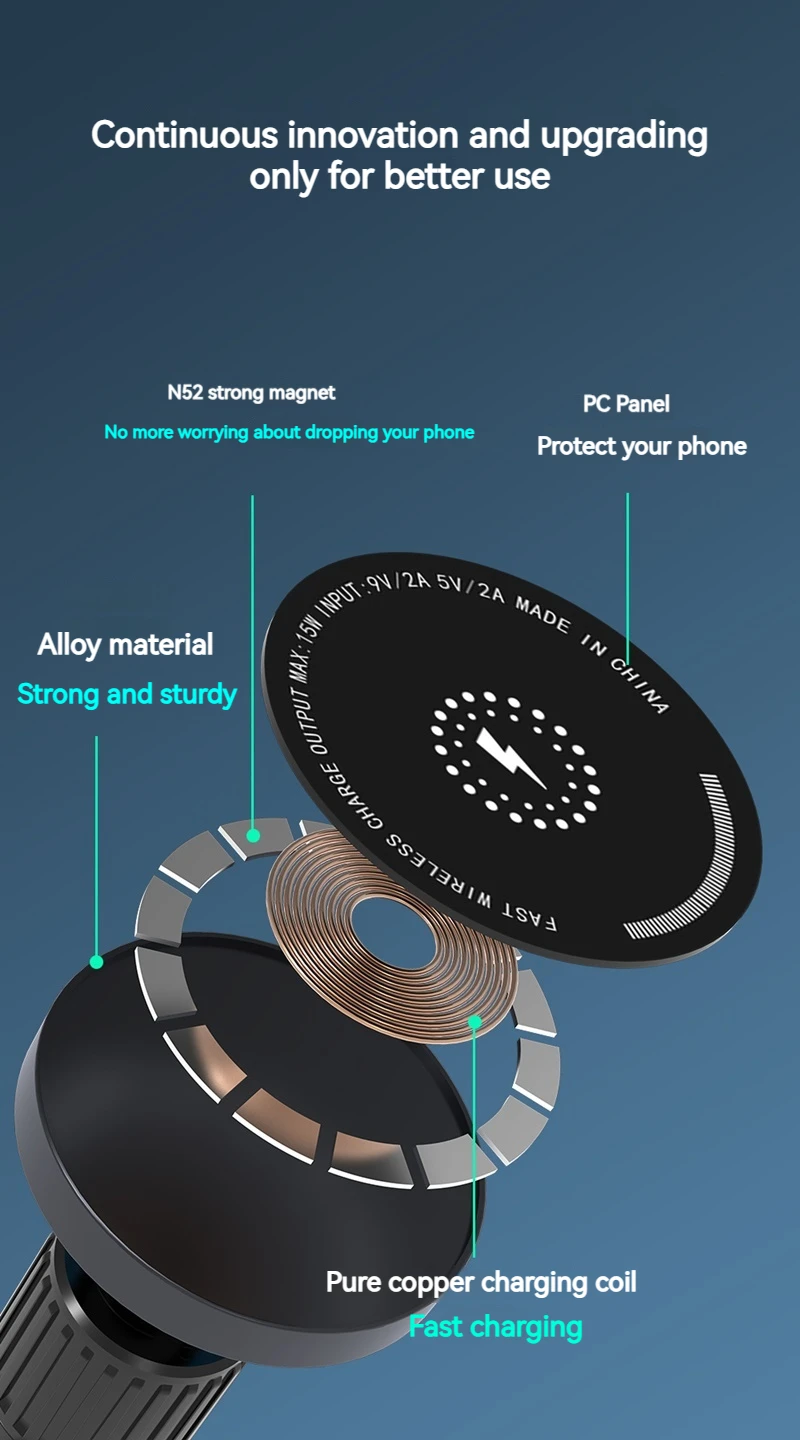 Feature1: 15W Magnetic Car Phone Wireless Charger Holder