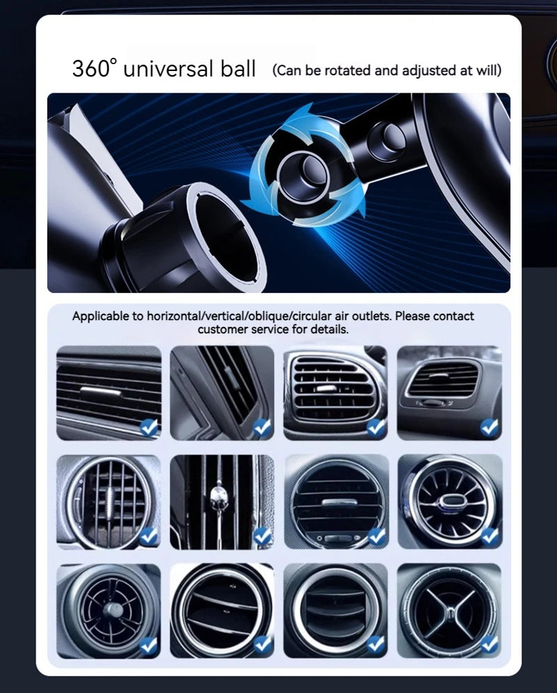 With a sleek metal body and a strong magnetic design, this wireless charger holder is not only stylish but also extremely durable. It fits seamlessly on both air vents and consoles, allowing you to position your phone at the perfect angle for easy viewing while driving. Say goodbye to tangled wires and messy car mounts - this charger holder will keep your phone securely in place while charging it wirelessly.