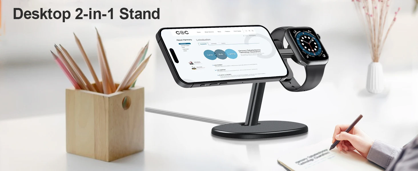 【Ergonomic Design for Work & Play】60° adjustable tilt holds iPhone 16 Pro Max stably in landscape mode—perfect for watching videos, FaceTiming, or browsing hands-free. Dual charging zones ensure Apple Watch Ultra 2 charges freely without blocking iPhone’s screen. Reduces neck strain and improves posture.