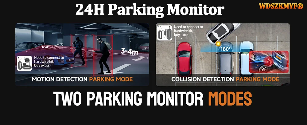 -------24-hour parking monitor-hardwire (optional): waiting 24 hours a day (to ensure that the car itself has electricity). When the car is started, it is recorded normally. After the car is turned off, if it is hit or vibrated, the machine will immediately wake up to record and keep the video as evidence. Don't worry about the situation that the car is turned off and you can't record the video.