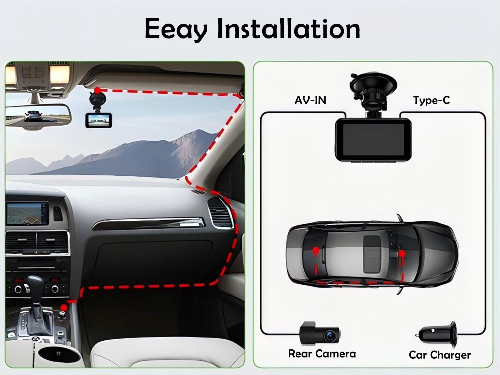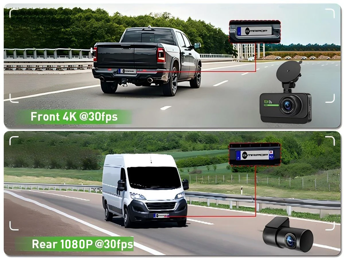 4K Dash Cam for Cars Car Camera Dash Cam WIFI Camera for Car Front and Rear Dash Camera Black Box 24H Parking Mode Recorder