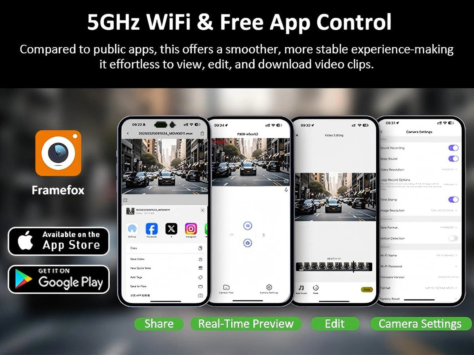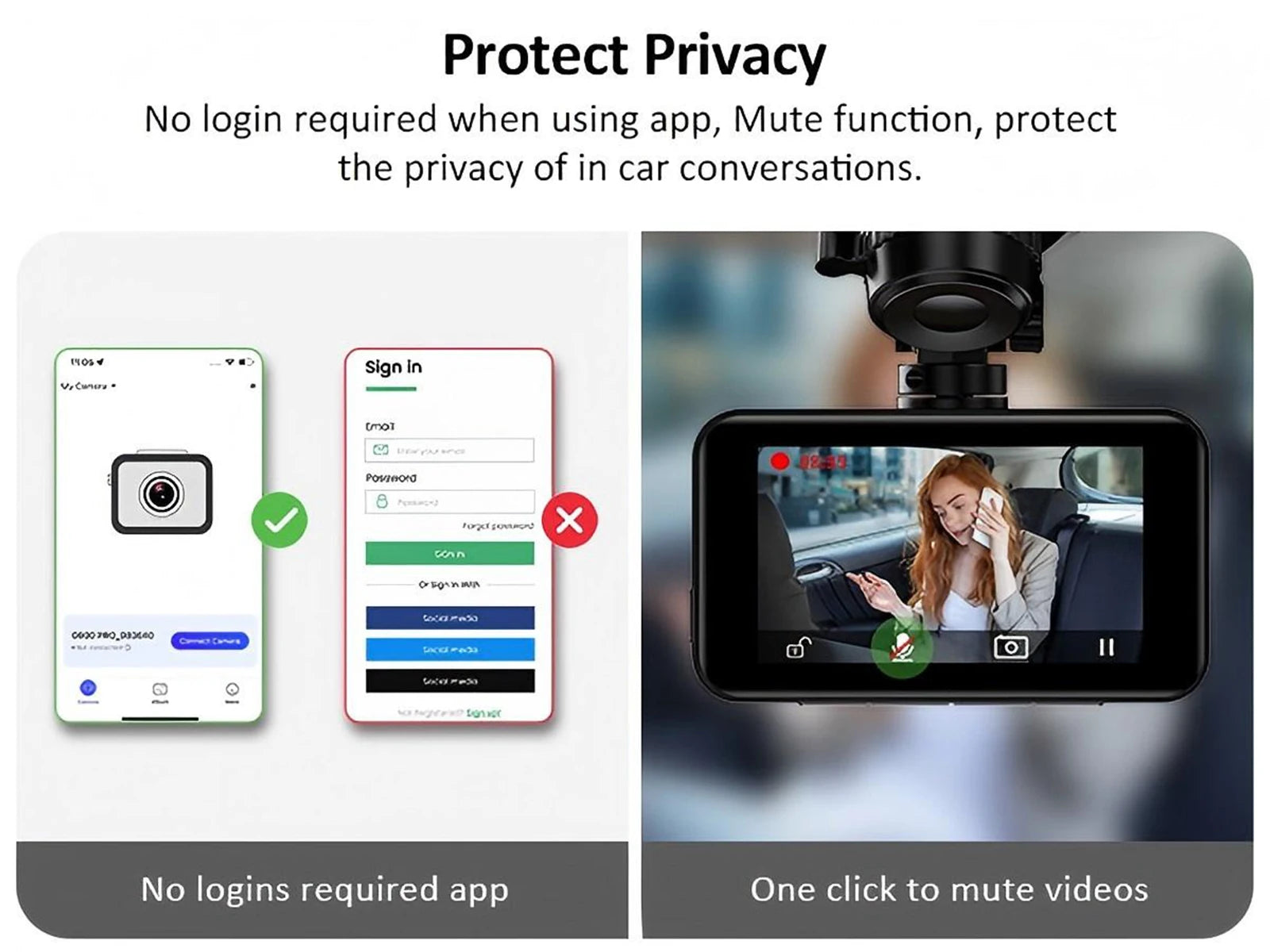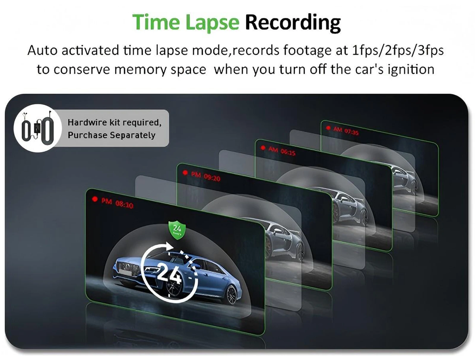 5. Function:Loop Recording, G-sensor, Parking Monitoring(Requires Hardwirekit), Mobile Detection, etc.