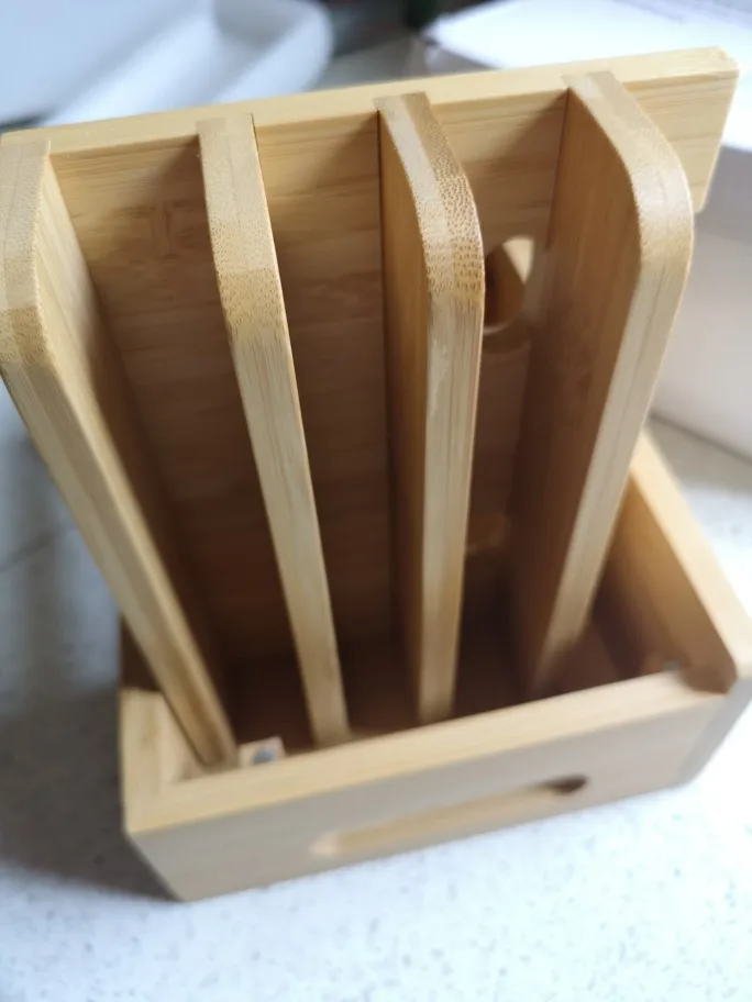 Say goodbye to clutter and hello to an organized and efficient life with the Bamboo Holder for iPhone Stand. Whether you need a place to store your phone cords or want a convenient spot to charge your devices, this stand has you covered. Order your Bamboo Holder for iPhone Stand today and experience the benefits of a more organized and efficient lifestyle.