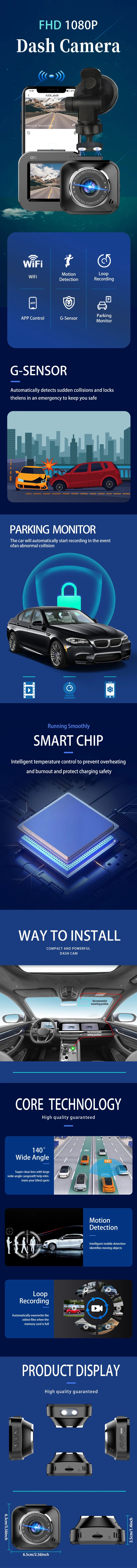 Car DVR Dash Cam WiFi FHD1080P Drive Video Recorder Dashboard Camera Parking Monitor Video Loop Recording Night Vision Black Box