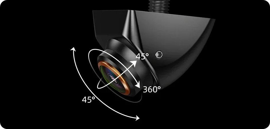 *The HD camera can rotate 360 degrees, and the image angle can be adjusted up/down 45 degrees. It can solve the problem of image offset and image angle deviation caused by the installation position. Suitable for car front/rear/left/right installation positions. It supports upside down installation.