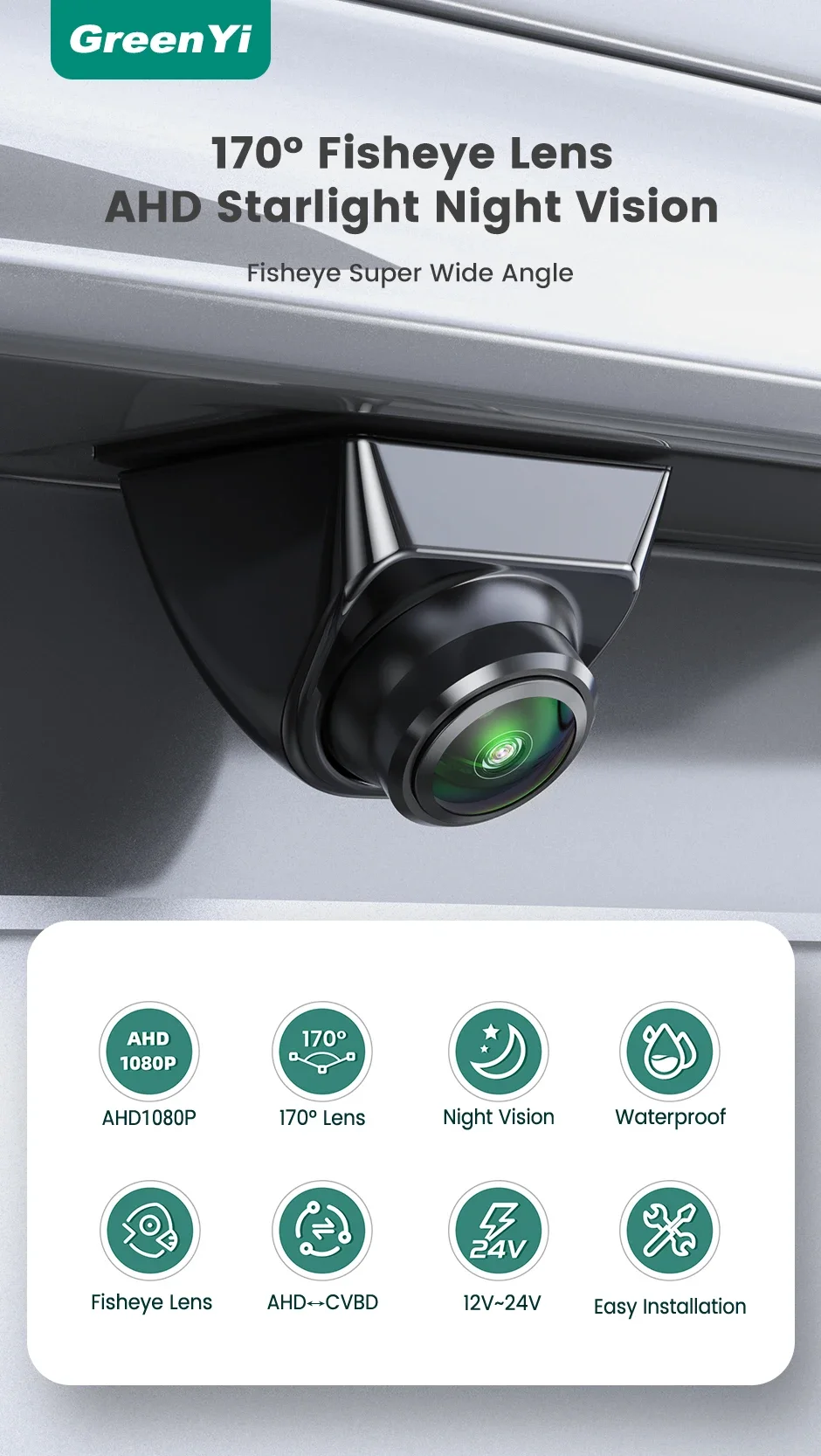 GreenYi 170° AHD Car Rear View Camera Mini Side/Front/Backup Fisheye 360° Adjustable Lens HD Night Vision Vehicle Reversing C899