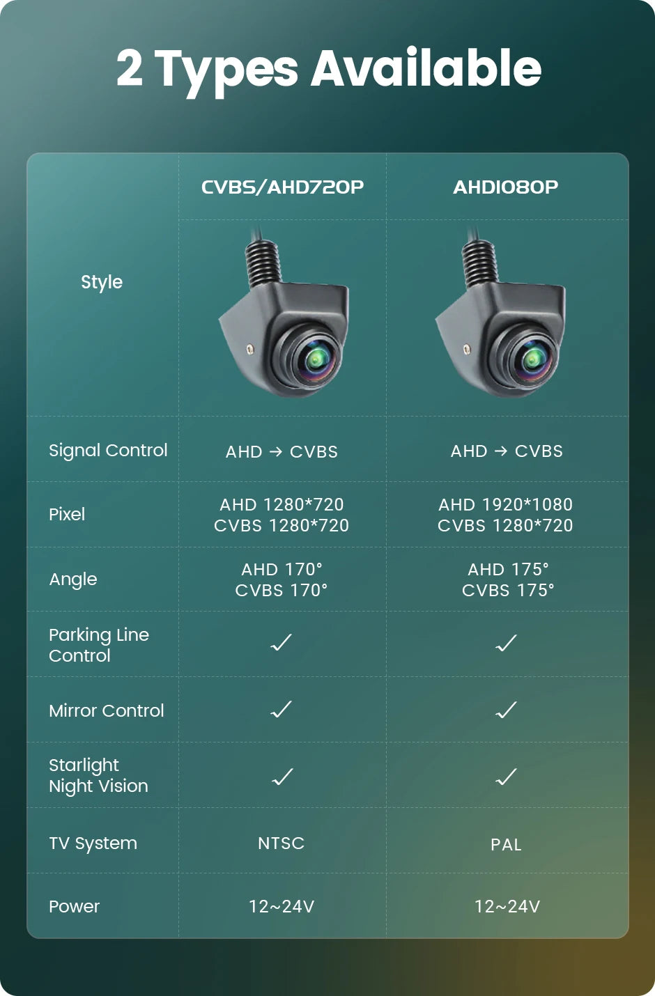 *Supports AHD and CVBS video signals --- This car rearview camera can be used with AHD monitors and AHD monitors.