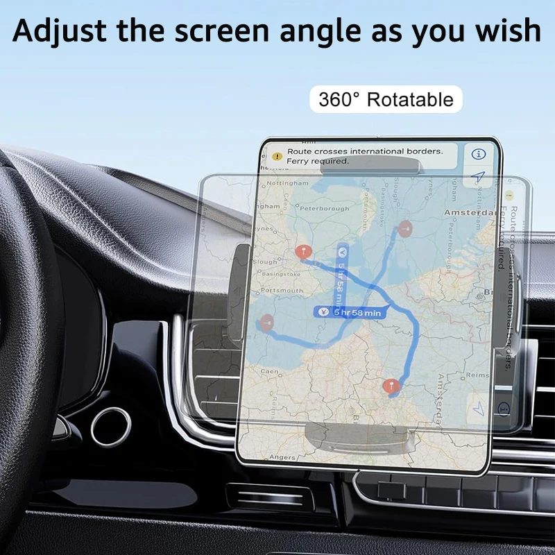 Flexible Adjustment The car phone/tablet holder features a 360º rotatable design, allowing you adjust devices between horizontal and vertical angles at will.