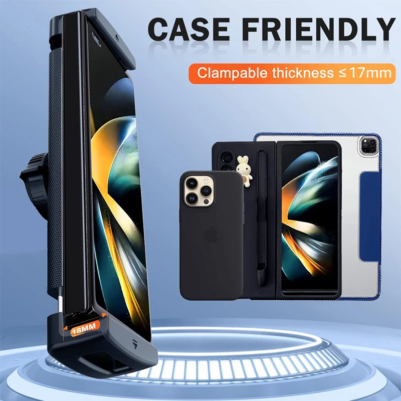 Wide Compatibility Compatible with all 4.7-12.9 inch screen smartphones & tablets. The clamp arm can stretch from 12cm to 24cm.