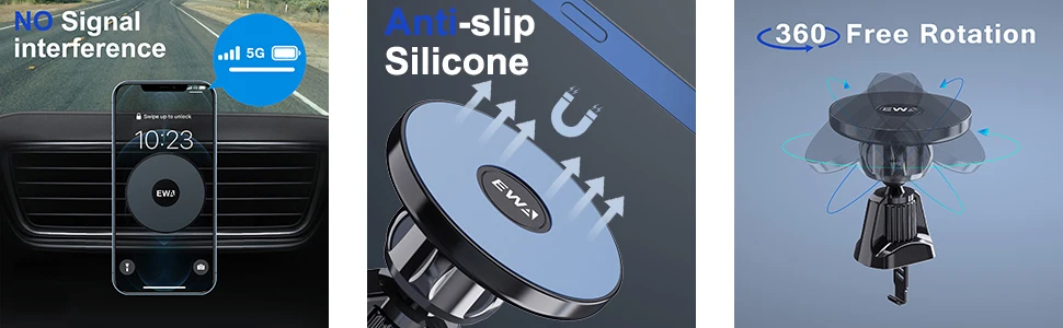 Installing and using the EWA Magnetic Car Mount is a breeze. Simply attach it to your car's air vent and you're good to go. The magnetic design allows for easy attachment and detachment of your phone, making it convenient for you to use while driving. Say goodbye to complicated car mounts that require extensive installation and adjustment.