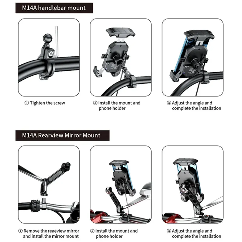 Motorcycle Phone Holder 15W Wireless Charger QC3.0 USB Charging Stand Handlebar Mirror Mount Bracket Bike Cellphone Support is a must-have accessory for motorcycle riders in the United States. This innovative device allows riders to securely mount their phones to their motorcycle's handlebar or mirror mount, while also providing wireless charging capabilities and USB charging options.