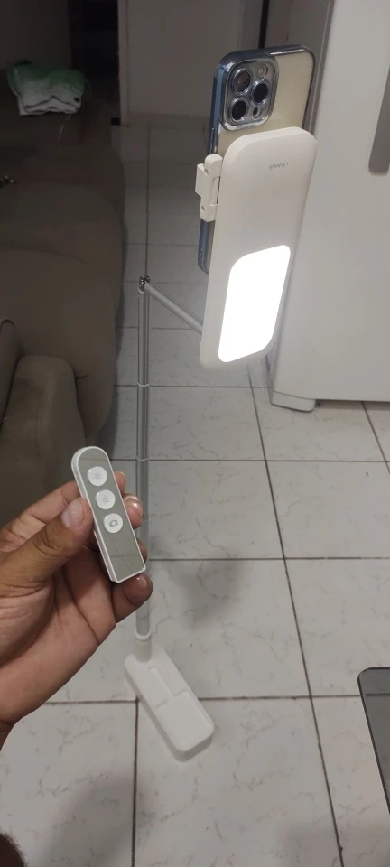 Looking for a convenient way to hold your smartphone while doing live broadcasts or taking selfies? Check out our Portable Phone Holder! This retractable wireless stand comes with a dimmable LED fill light for clear video recording, and is compatible with all mobile phone brands. Made with durable aluminum alloy, ABS, and PC materials, it is rugged and resistant to falls. With a 360-degree rotating design, the holder is perfect for vertical or overhead shooting. You can also adjust the height to suit your needs. The holder comes in a stylish white color and folds easily for storage. Get your hands on the US-ZB209 model today and take your video recording to the next level!