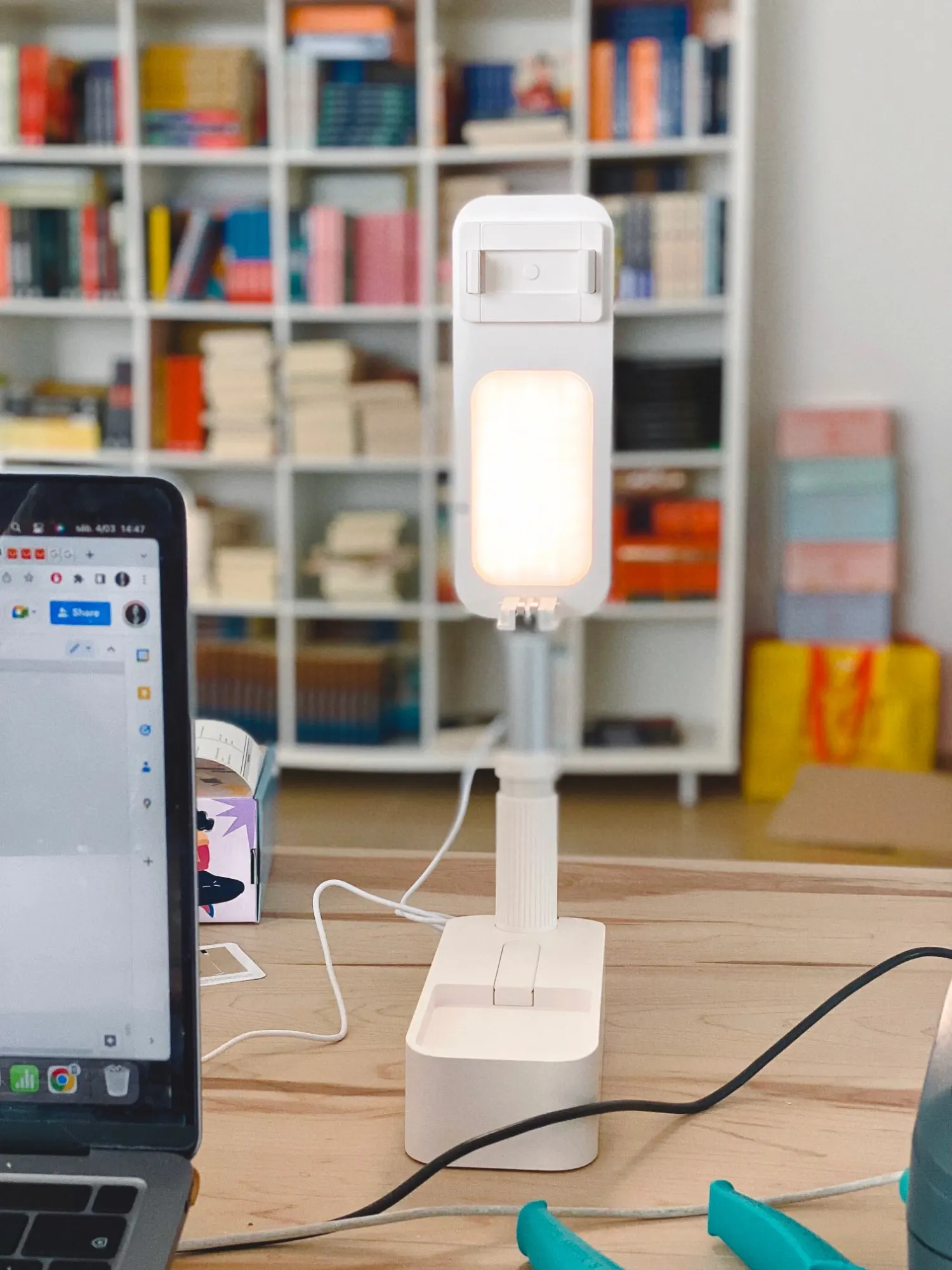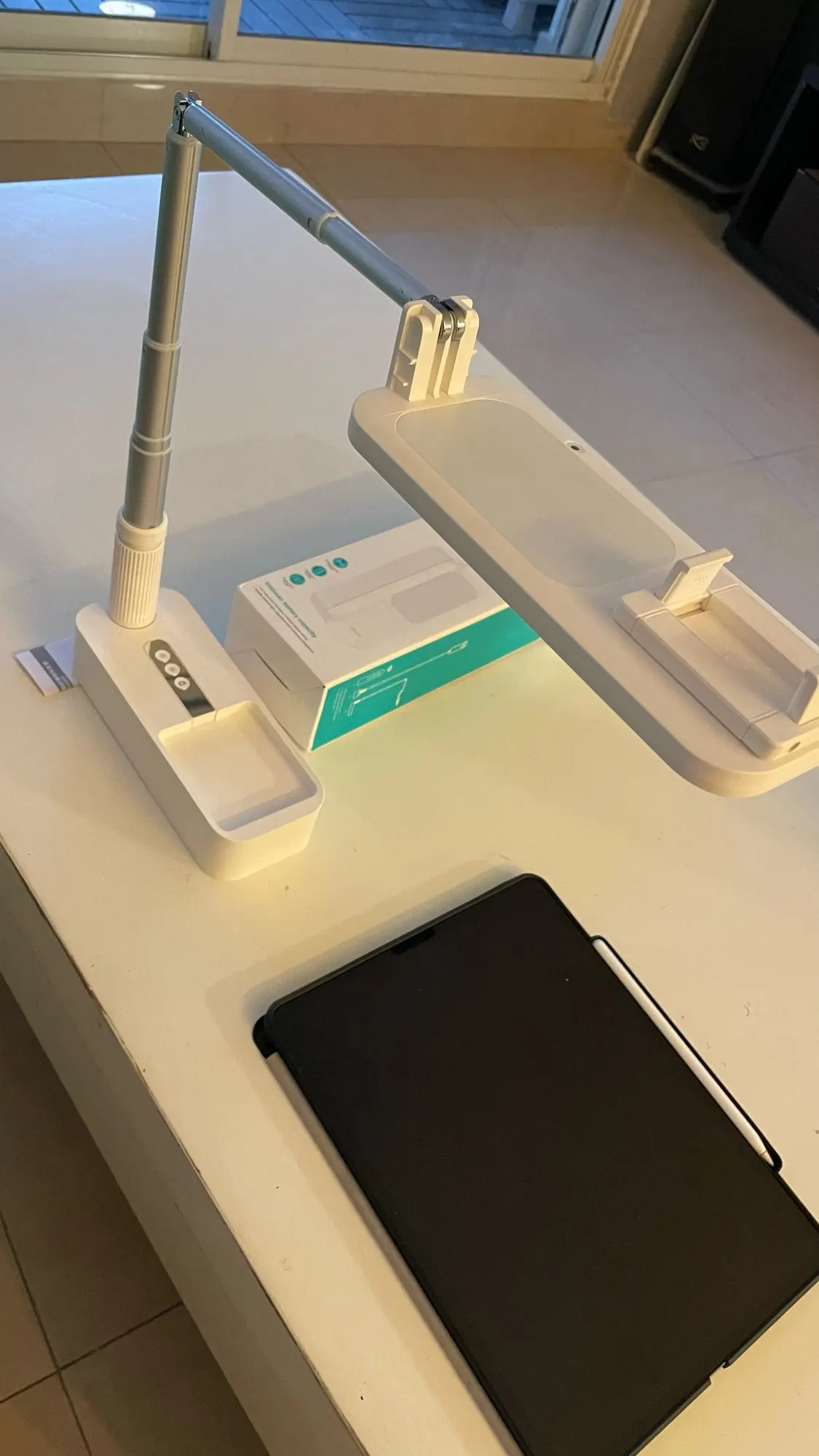 Not only is this phone holder functional, but it is also stylish. It comes in a sleek white color that adds a touch of elegance to your setup. When not in use, it can be easily folded for storage, saving you space and keeping your setup organized.