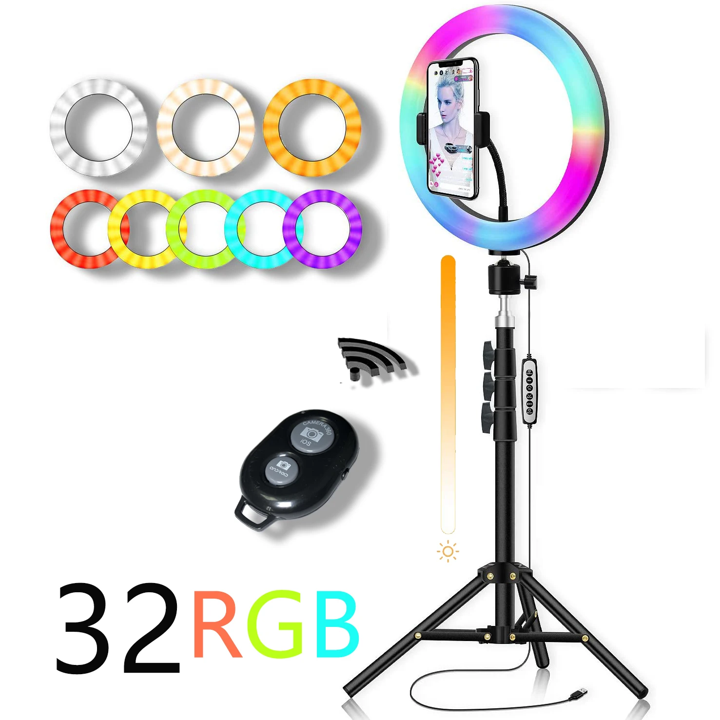 RGB Color Soft Ring Light Remote Circle Lamp With Tripod Stand Photography Fill Lighting Selfie Video Recording 26CM RingLight