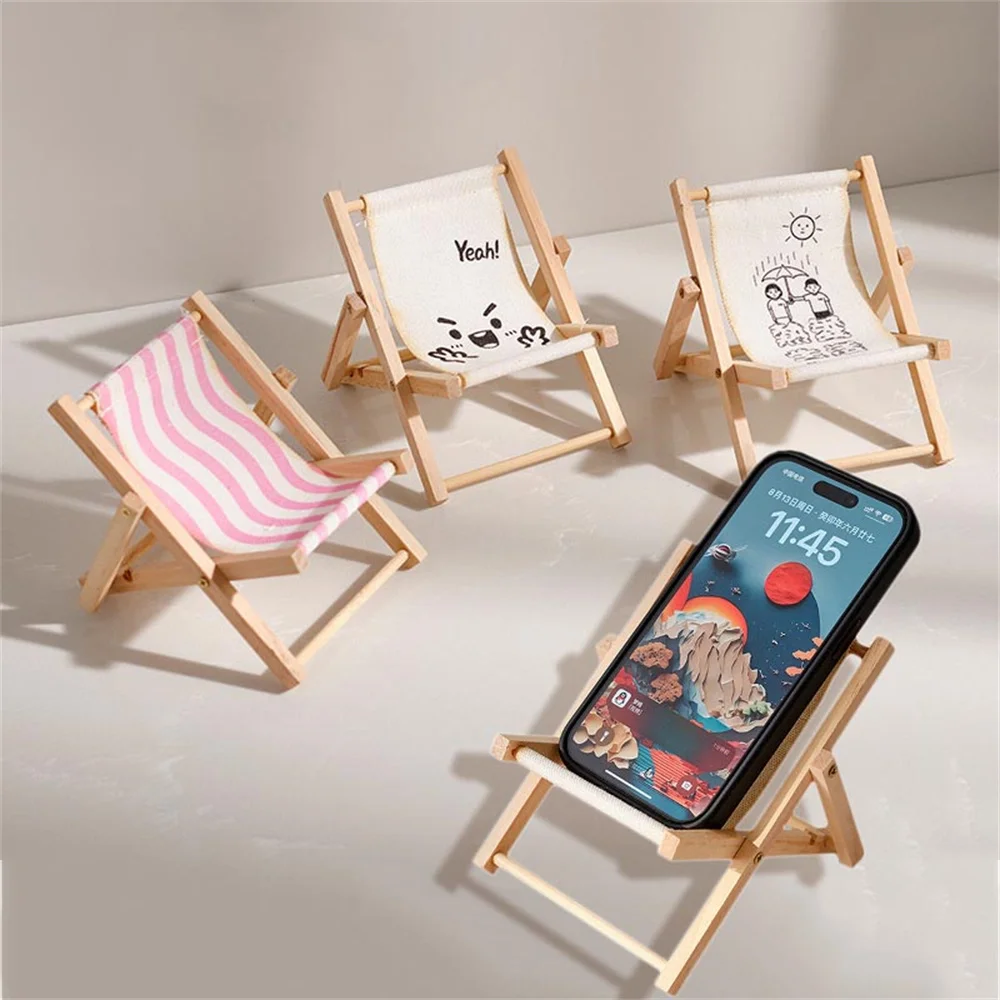 1 PC creative Wood Chair Shape Mobile Phone Stand Beach chair Desktop Phone Holder Wooden Mobilephone Support Tablet Stand